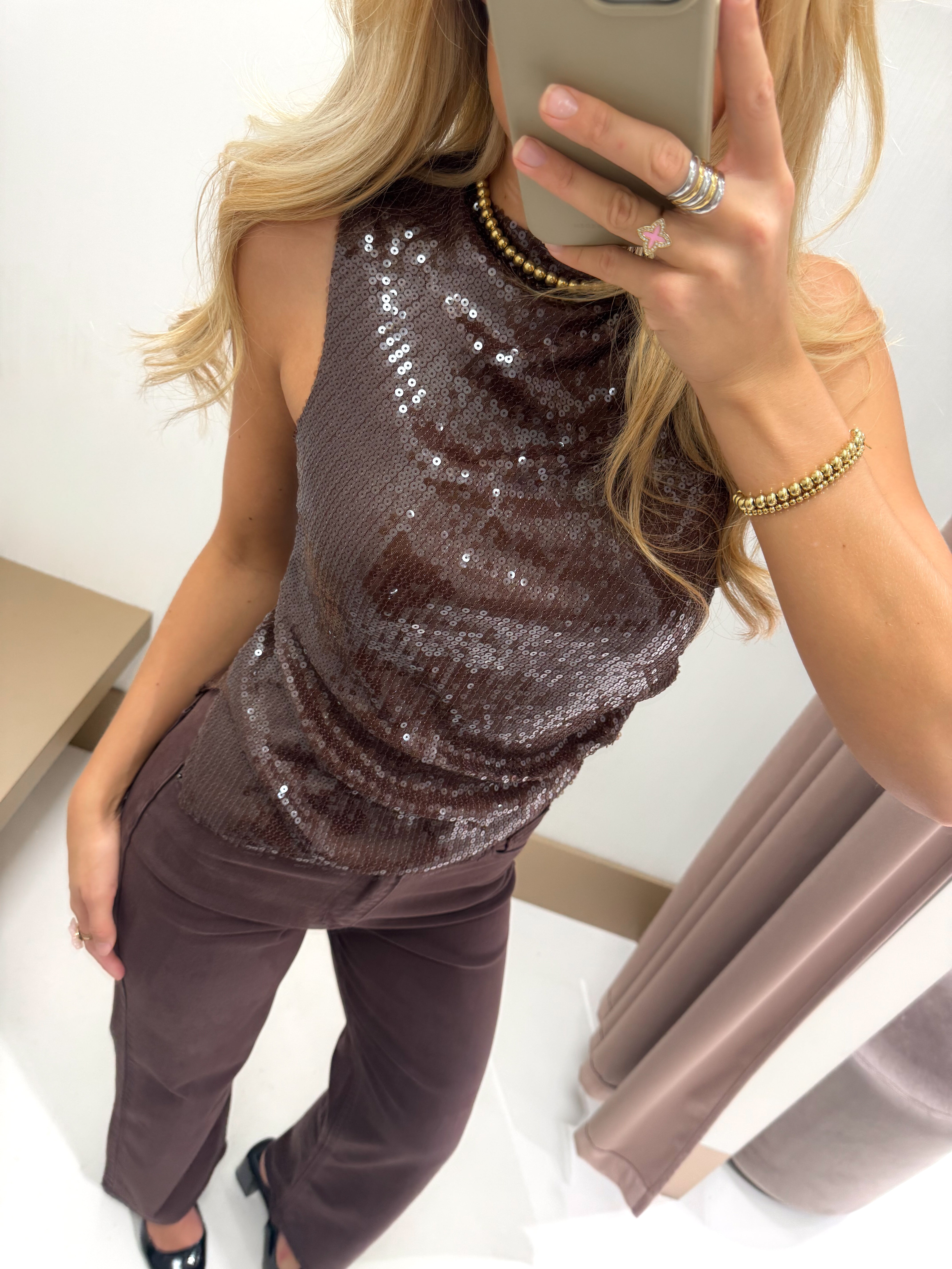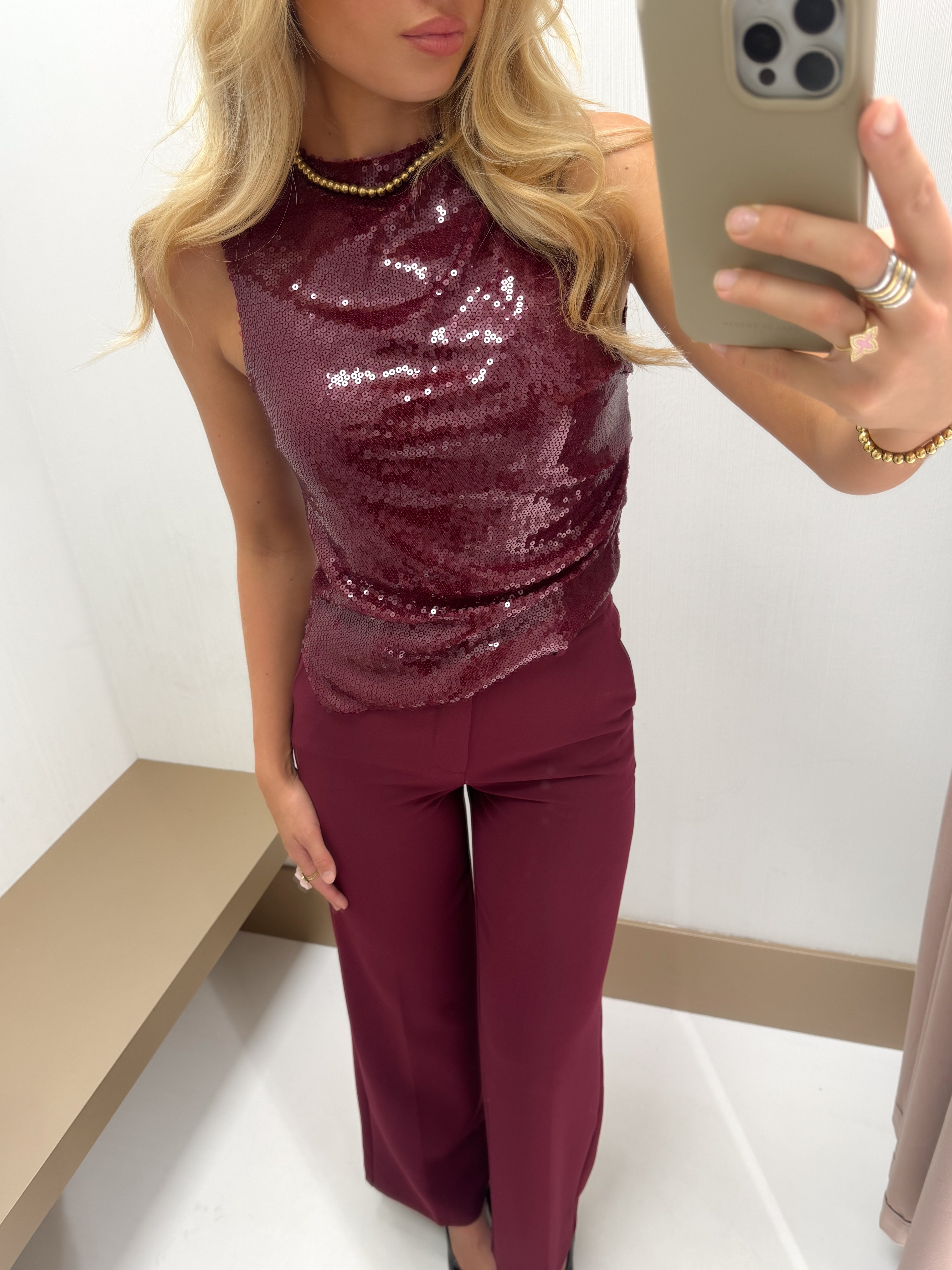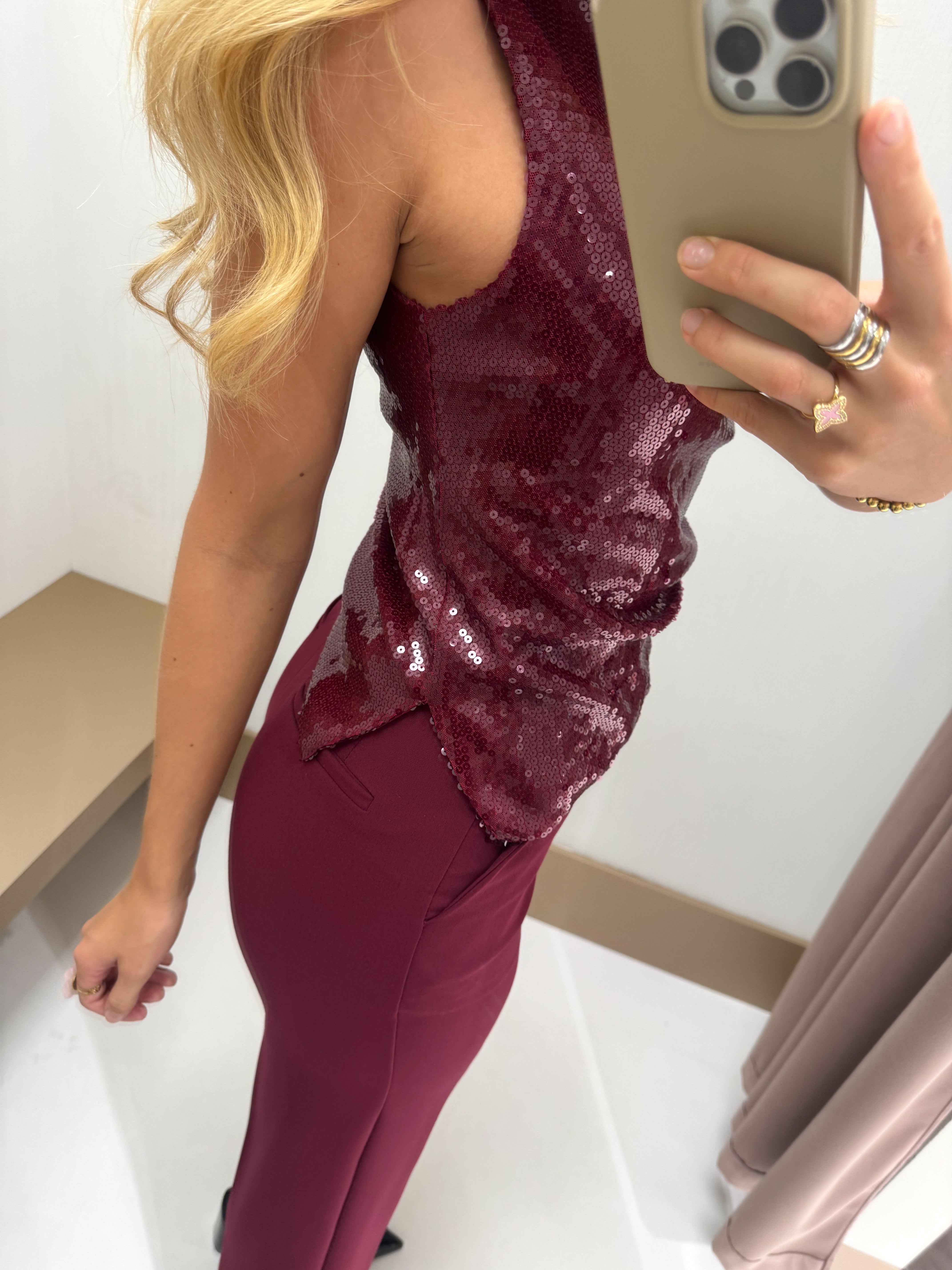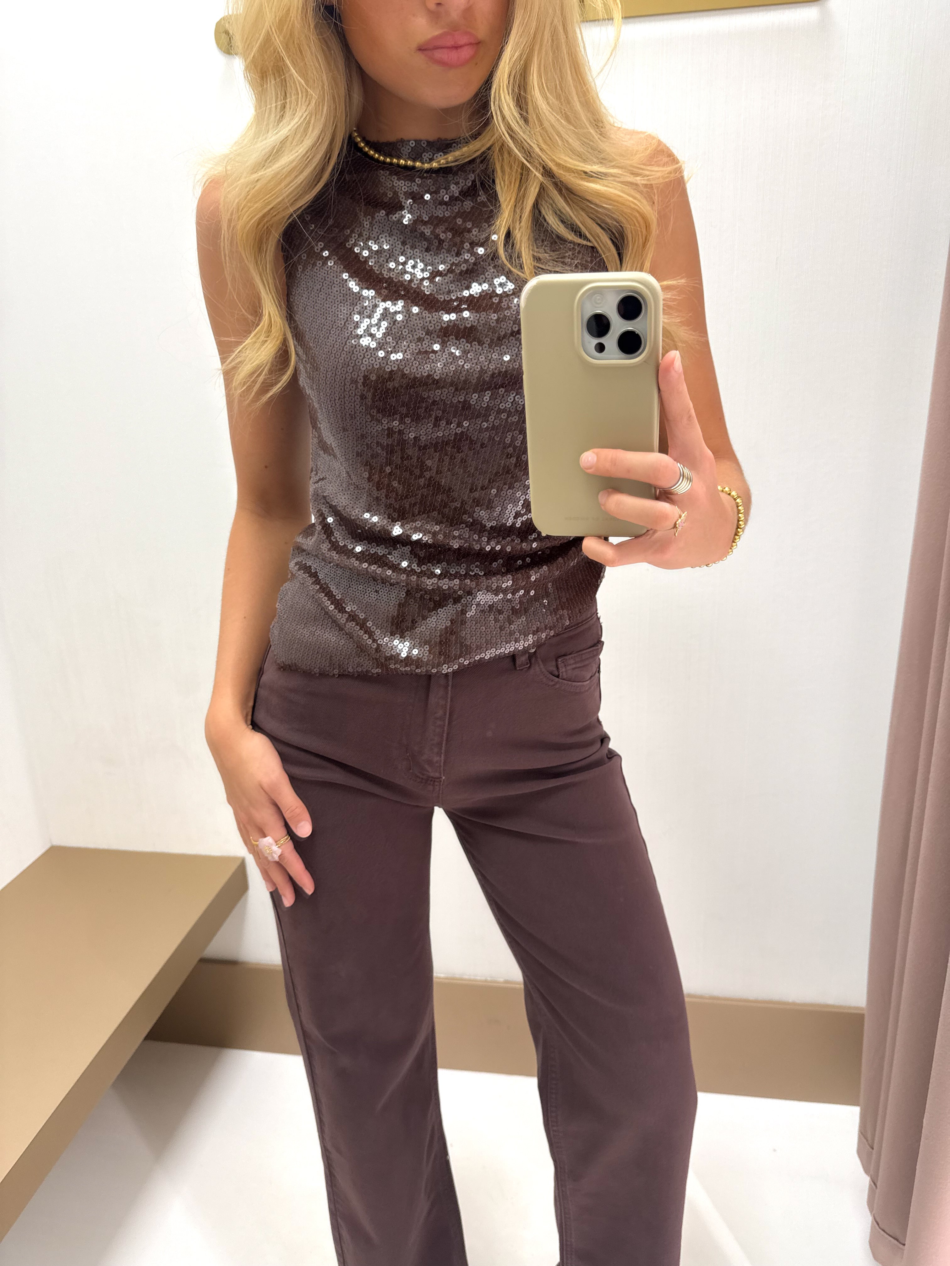 De Molly Top heeft een asymmetrisch model met pailletten aan de buitenkant.