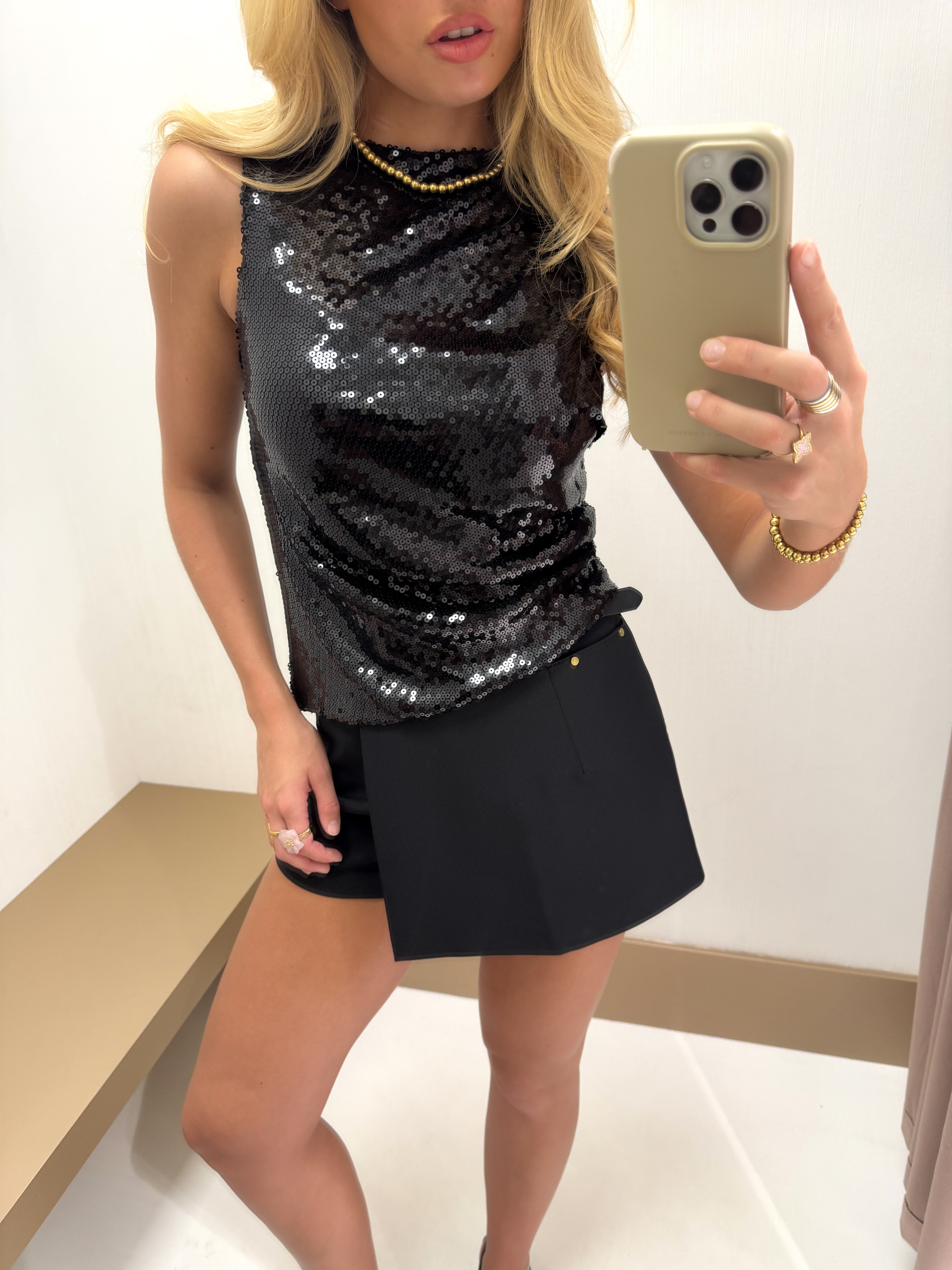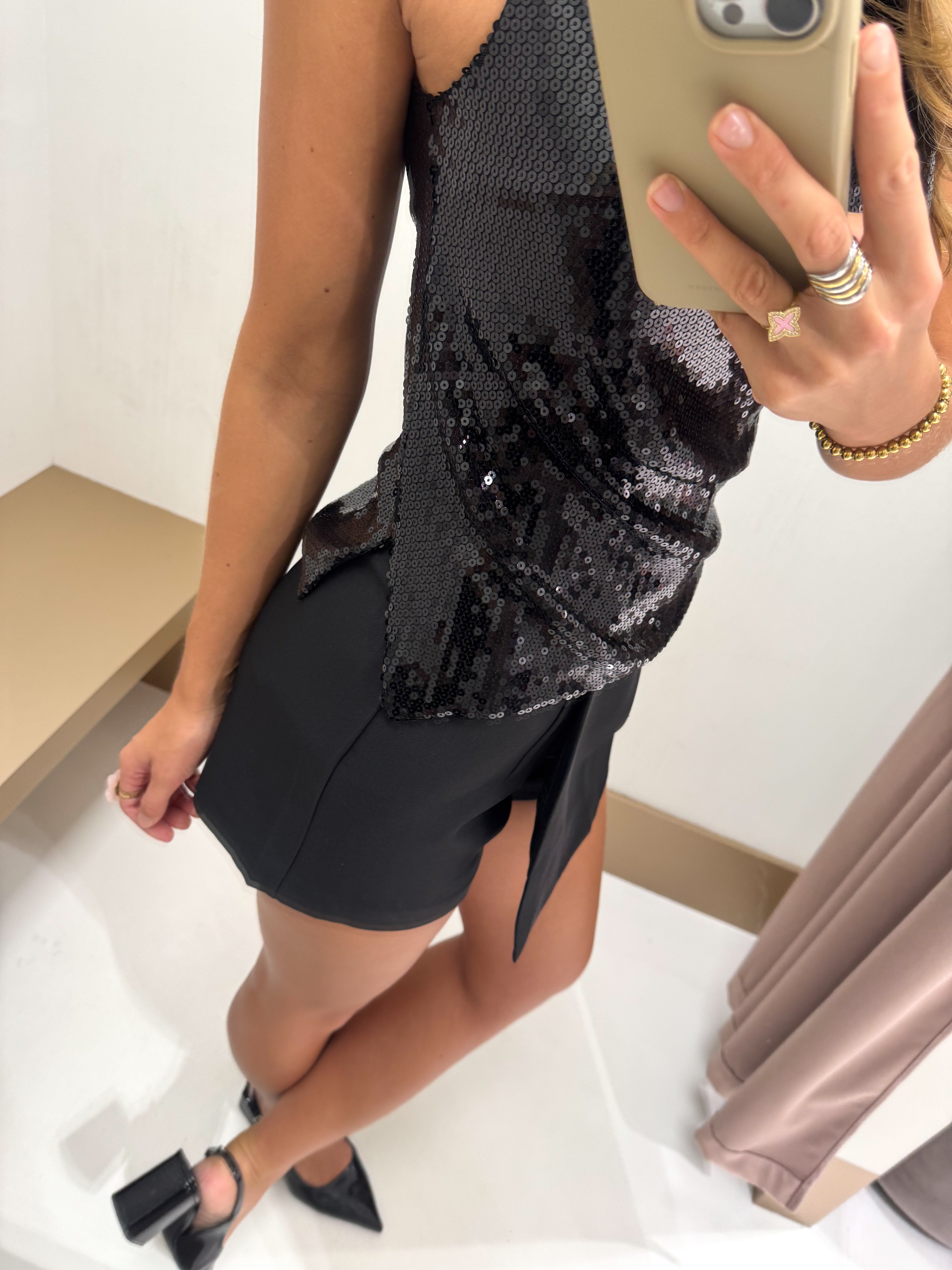 The Molly Top has an asymmetrical design with sequins on the outside.